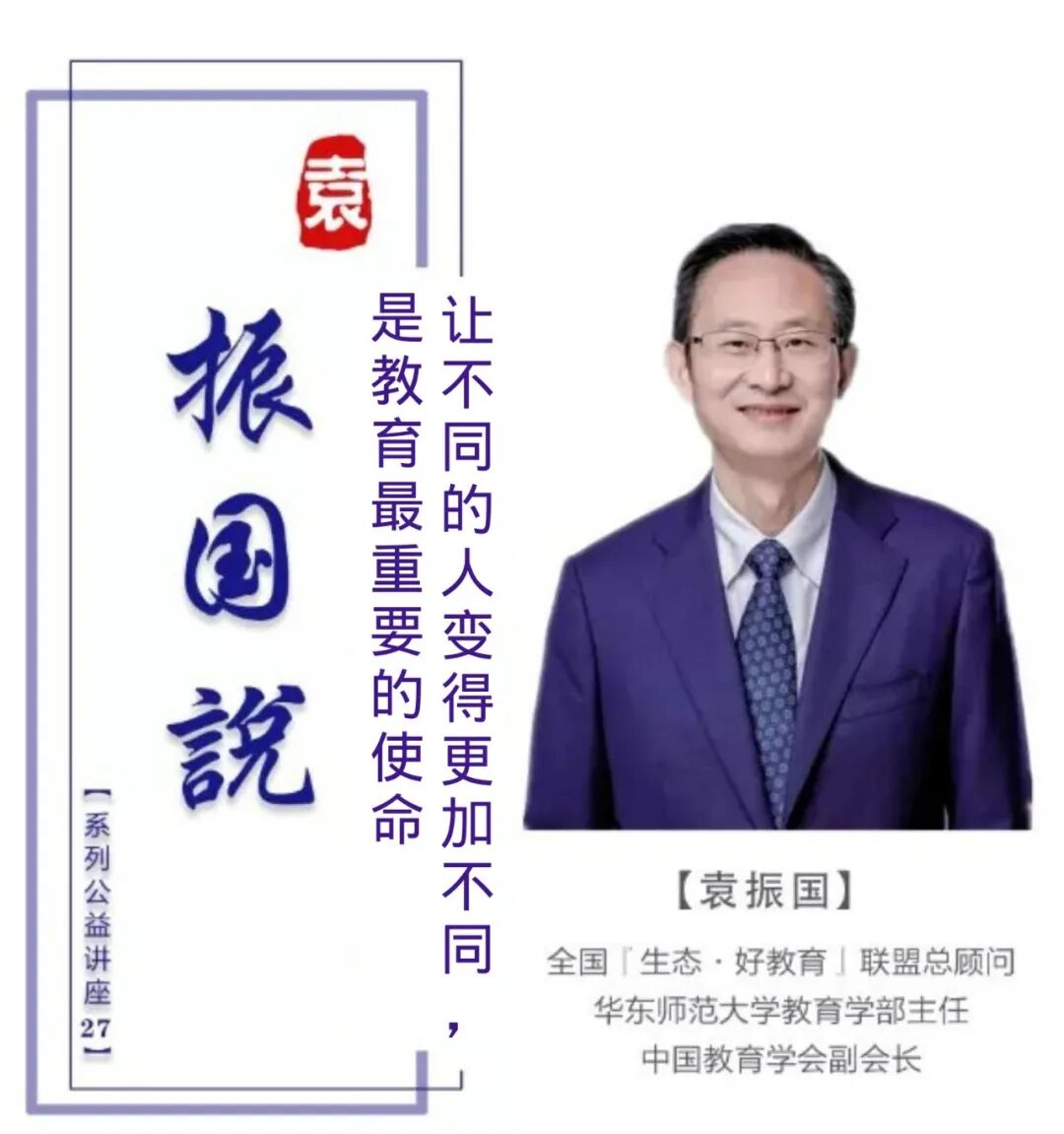 本期嘉宾导师——袁振国,中国教育学会副会长,国家教育体制改革领导小组办公室副主任,国家教育咨询委员会秘书长,华东师范大学教育学部主任,终身教授、博士生导师,东钱湖教育研究院院长,全国『生态·好教育』联盟、浙江省浙派教育生态科学研究院总顾问。