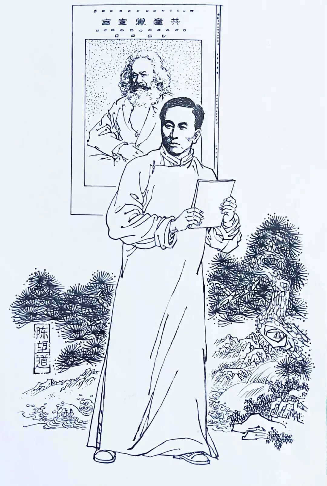 陈望道(1891.1-1977.10.29)浙江义乌人,中国著名的思想家、社会活动家、教育家、语言学家、共产党创始人之一。早年留学日本,毕业于日本中央大学法科,获法学学士学位。回国后积极提倡新文化运动,任《新青年》编辑,翻译出版了《共产党宣言》第一个中文全译本。是中国共产党上海发起组成员。历任全国人大第四届常委,第三、第四届全国政协常委、民盟中央第三届副主席。曾当选为中国科学院哲学社会科学部委员,毕生从事进步语文运动和语文科学的教学研究,建立了我国修辞学的科学体系,对哲学、伦理学、文艺理论、美学等造诣较深。主编《辞海》,著有《修辞学发凡》《文法简论》等。